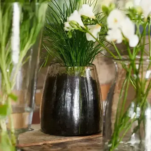 This dappled clear glass vase, in a classic round shape, is perfect for displaying freshly cut flowers.