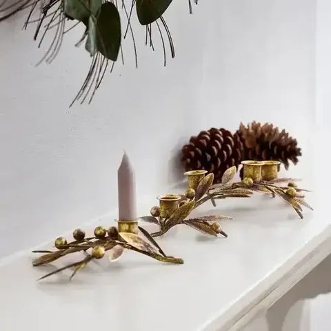 Glamorous gold iron mistletoe centrepiece candleholder is perfect for adding Christmas magic to interior spaces during the holiday season.
