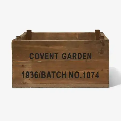 Covent Garden Wooden Crate – crafted in a rustic style and finished with antique wax for a charming, old-world feel. This versatile wooden crate is perfect for stylish storage or display.