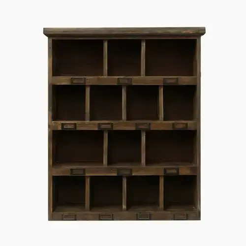 A rustic-style wall unit crafted with charm and character, finished with antique wax to create an old-world feel. With multiple cubbies, it offers practical storage and display space while adding a warm, vintage-inspired touch to any room. Perfect for showcasing books, decorative accents, or personal treasures, it seamlessly blends functionality with rustic elegance.