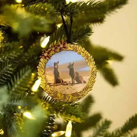 The Hanging Round Frame is a sweet addition to any Christmas tree. Stamped with the word "Love" this delicate hanging picture frame really makes a wonderful gift for a loved one this Christmas.