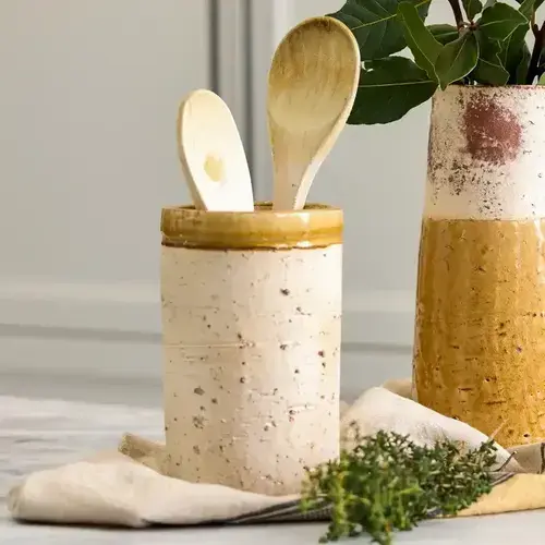 With its rounded form and rustic glaze, this terracotta pot brings warmth and artisan character to any space. The matte base is paired with a bold glazed accent, creating a playful contrast that feels both relaxed and thoughtfully crafted. Ieal for styling on open shelving, kitchen benches or dining tables – either as a decorative piece or functional vessel.
